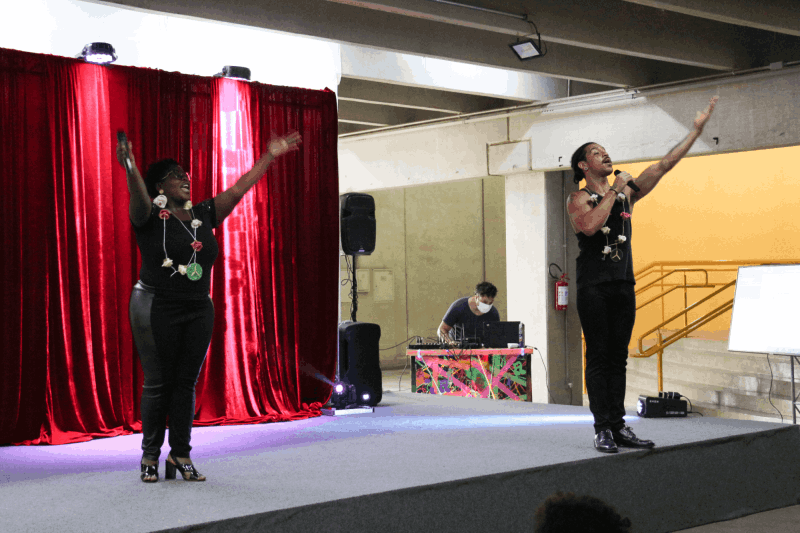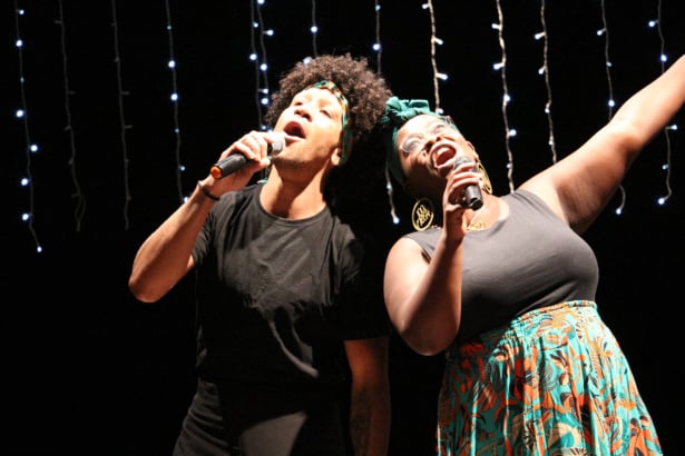Com letras projetadas em formato karaokê, o público deixa de ser apenas espectador e passa a fazer parte da cena. A interação é constante, o clima é de celebração e a apresentação se transforma em uma grande festa coletiva, marcada pela proximidade entre artistas e plateia.